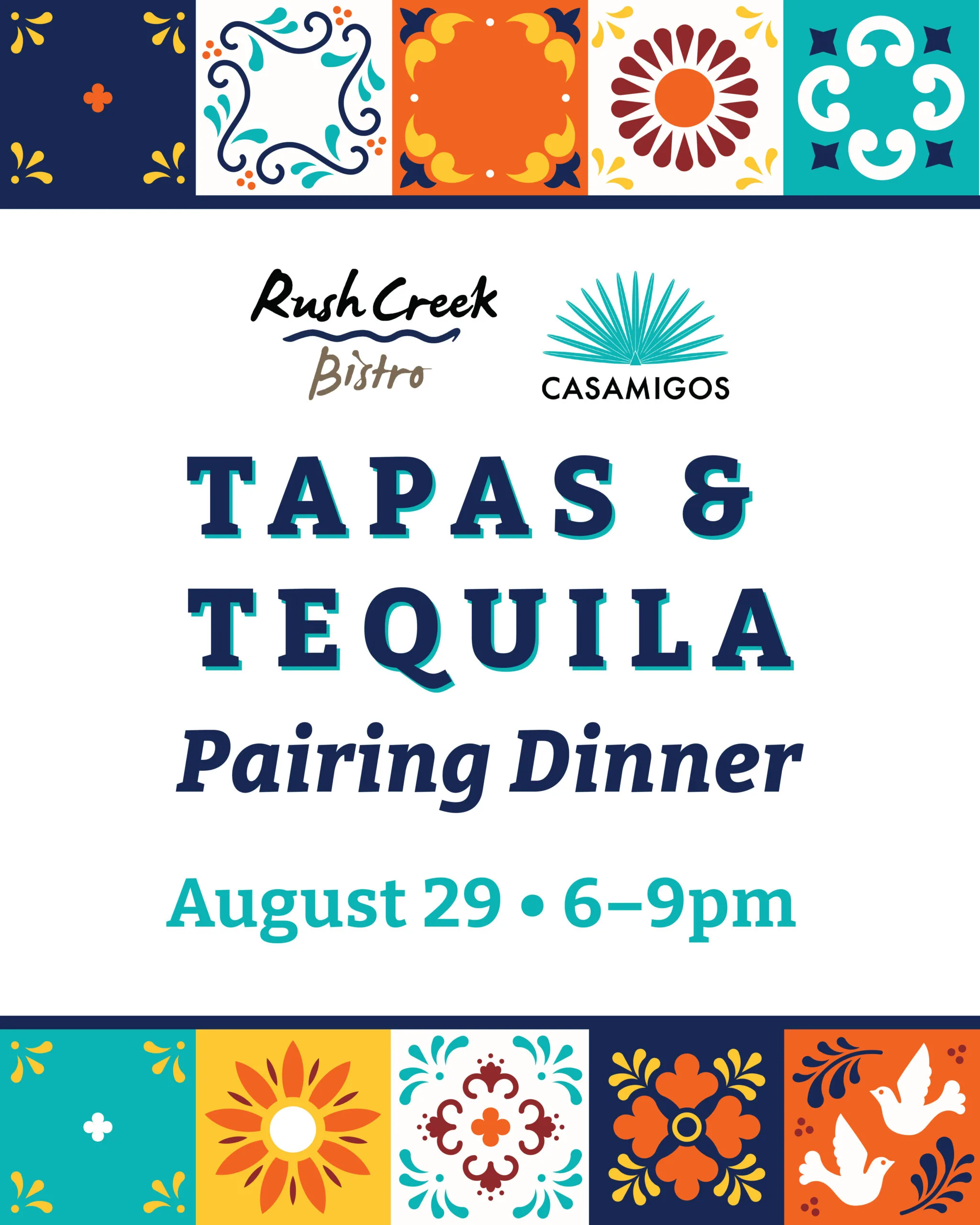 Join us on Friday, August 29 from 6 to 9 PM for an exclusive Tapas and Tequila Dinner featuring five expertly crafted food courses, paired with four unique handcrafted tequila cocktails. With each cocktail, you’ll also receive a tasting pour of the featured Casamigos tequila, so you can truly savor the spirit behind every sip.